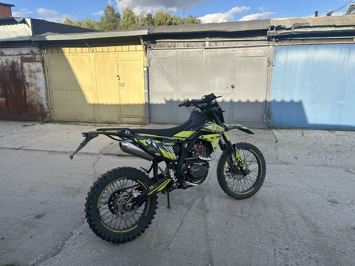 Прошло полгода с хвостиком и на ДР мне подарили еще один сертификат на Эндуро катку. Тут уж я не выдержал, начал думать, общаться с соседом мотоциклистом в гаражах и записался на права категории А. А пока я учился, подвернулся на Авито б/у мотик. Хз дорого или нет (156к), слегка побитый он, но двиг вроде ровно работает. Пробег 4312км. Там сям его пришлось подрихтовать. На запчасти ушло на данный момент 15к.