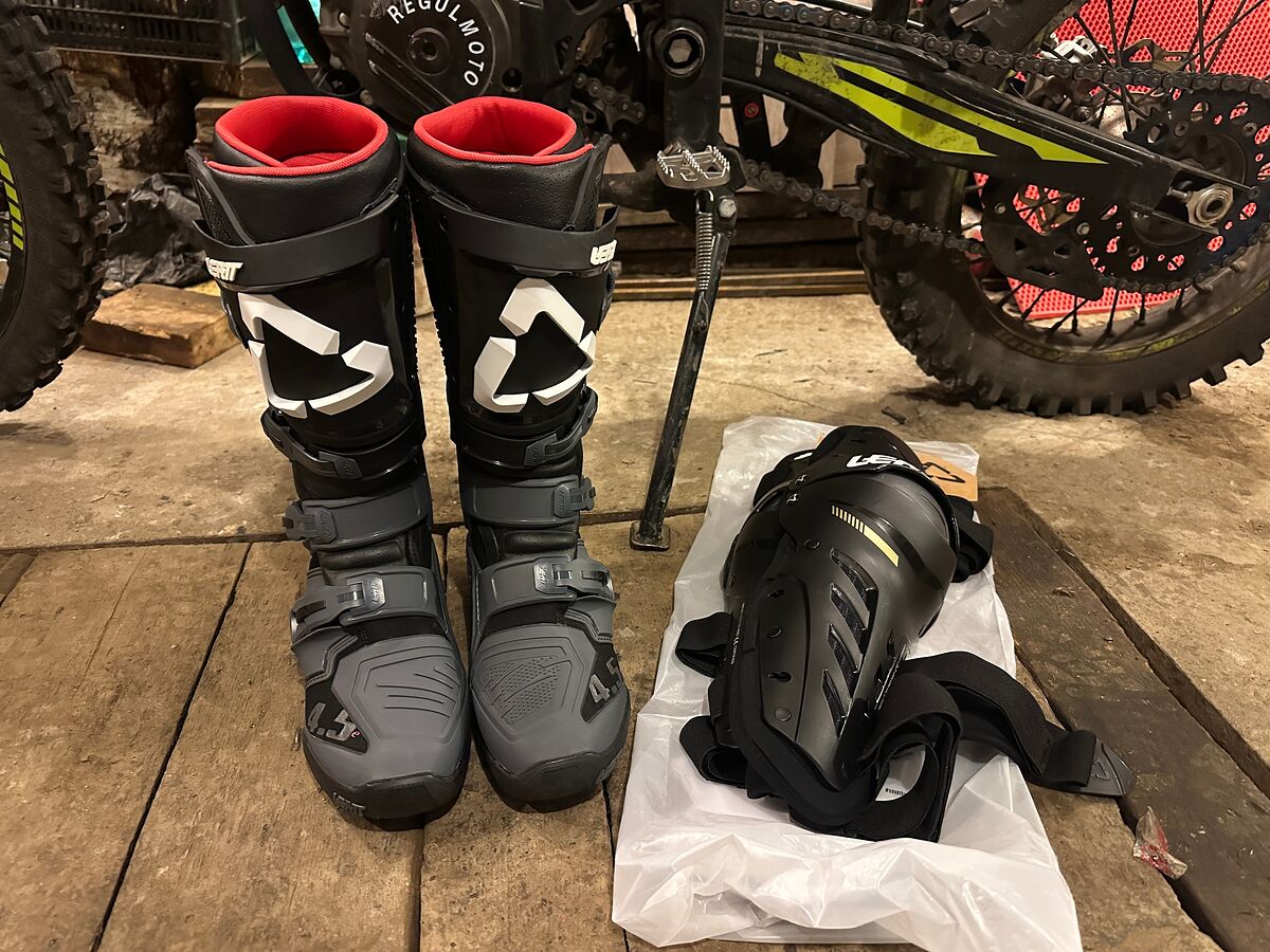 Прикупил перед сезоном экип на ноги в МотоБро. А то начнется сезон и всё разберут. Изначально хотел брать боты Leatt 5.5 Enduro, но даже не думал, что боты надо на пару размеров больше брать. В любом случае, они не подошли. На левой ноге шарнир упирался в костяшку. И это при размере 44.5 (у меня 42 на минутку). Перемерял размеры 43 и 44.5. Так же померял Gaerne SG 12 и Leatt 4.5 Enduro. В результате Литы 4.5 на размер 44.5 и взял. Ну а так как колени всё равно тоже нужны, а цена оказалась ниже чем я расчитывал, то взял еще колени Leatt Dual Axis.