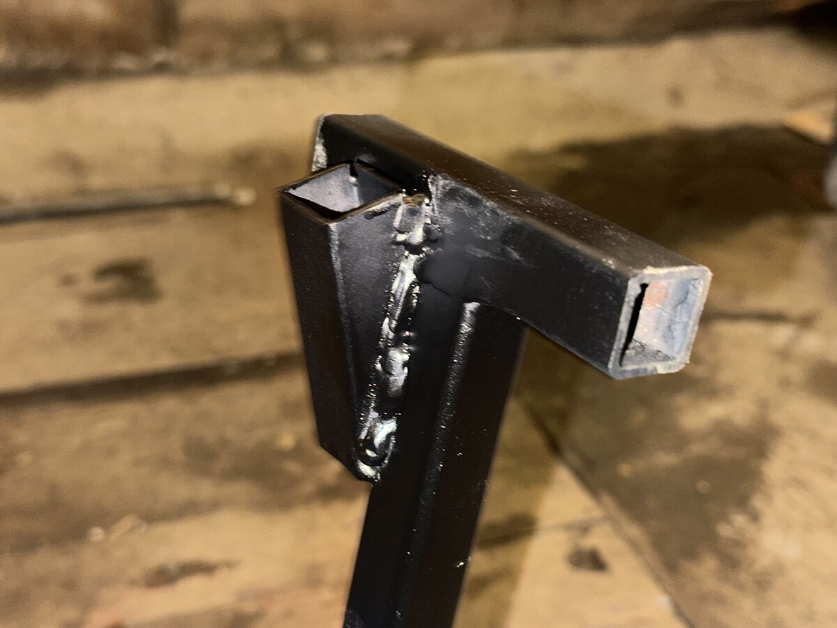 Болгаркой вжик, сваркой бжь-бжь, краской пшик и готово. Толстой трубы 20x20x2 у меня не было, но была полторашка. Её и приварил. Вначале думал пихать туда длинную трубу 15x15, но оказалось, что туда отлично встает удлинитель 1/2". Им теперь и опускаю мот.